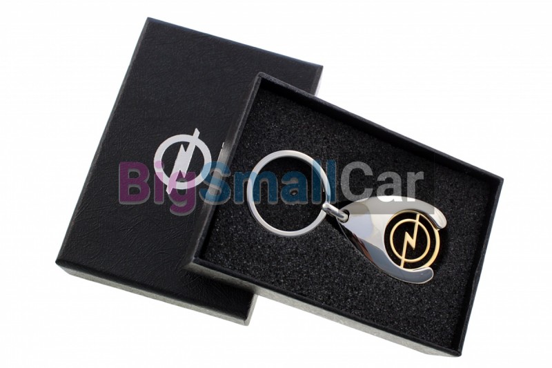 Брелок для Opel "Съемная эмблема" состоит из эмблемы на металлической основе и крупного кольца-карабина.