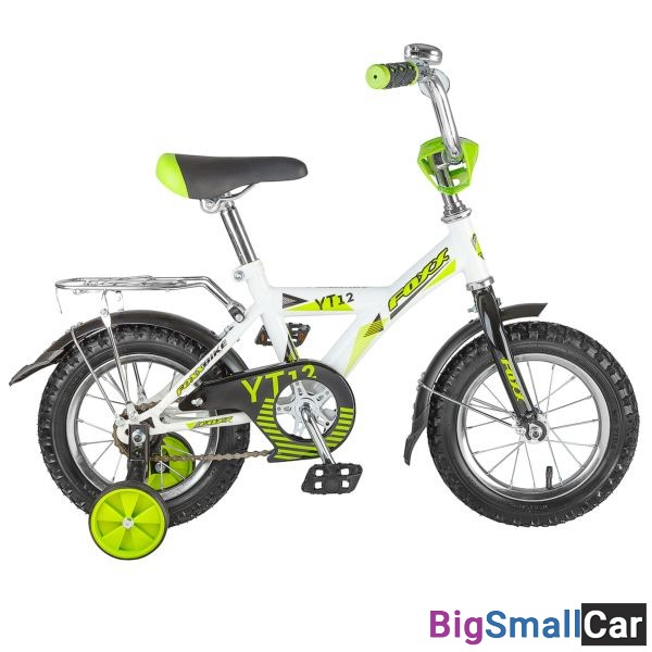 Велосипед FOXX 12", YT, белый, защита А-тип, крылья, багажник хром. #113398
