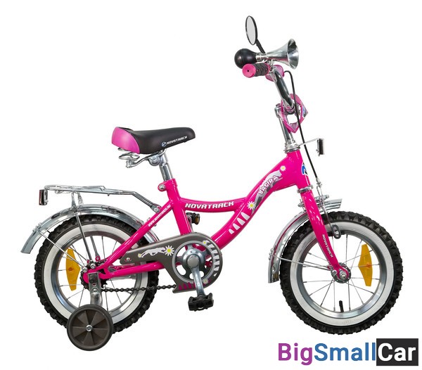Велосипед NOVATRACK 12",S, Багира, розовый,тормоз 1 руч. нож.,крылья и багажник хромир #038289
