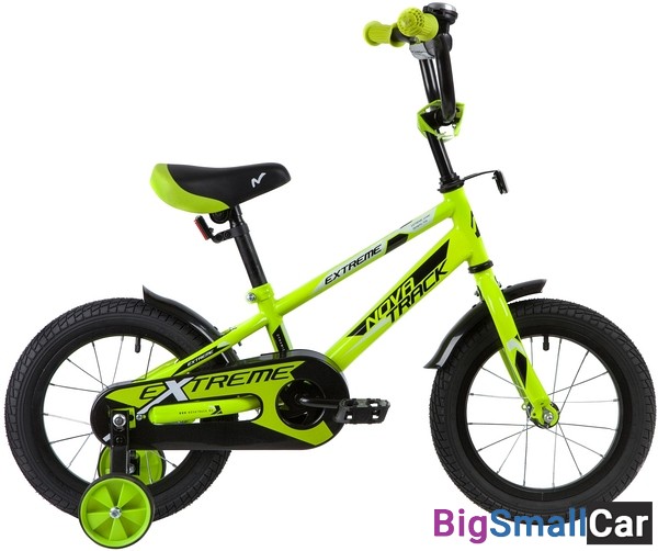 Велосипед NOVATRACK 14", EXTREME, салатовый, полная защита цепи, тормоз нож, короткие крылья, нет б