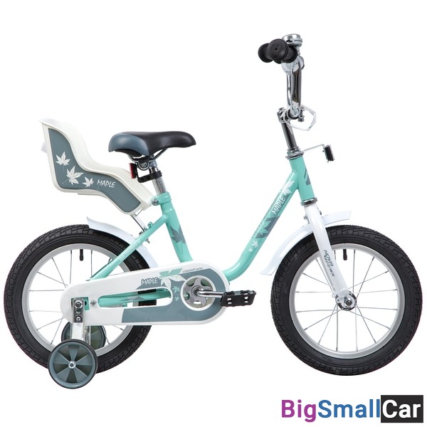 Велосипед NOVATRACK 14" MAPLE, серо-зелёный, полная защита цепи, тормоз нож, крылья цвет, сидение дл
