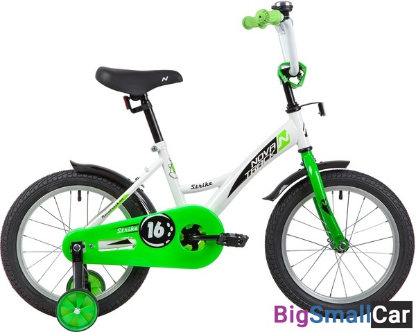 Велосипед NOVATRACK 16" STRIKE белый-зелёный, тормоз нож, крылья корот, полная защита цепи